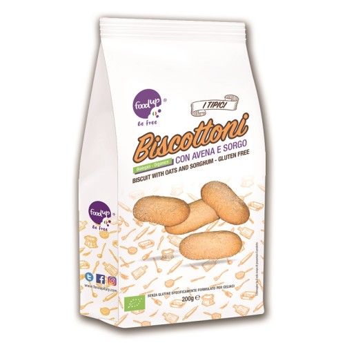 Farina di riso*, amido di riso*, olio di girasole*, zucchero di canna*, uova*, farina di avena* 5%, sciroppo di glucosio*, inulina da agave*, farina di sorgo* 4%, sciroppo d'agave*, fecola di patate*, albume d'uovo*, agente lievitante: bicarbonato di sodio, sale.