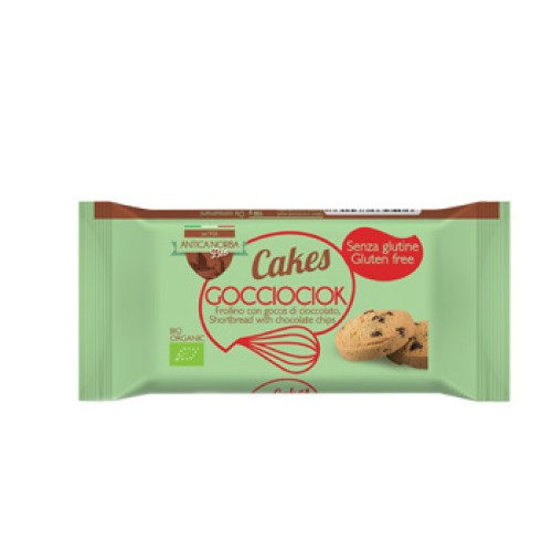Farina di riso*, amido di mais*, zucchero di canna*, uova*, burro* (latte), gocce di cioccolato* 9% (zucchero di canna*, pasta di cacao*, burro di cacao*, emulsionante: lecitina di soia; estratto di vaniglia*), farina di mais*, albume d'uovo*, olio di girasole*, glucosio da mais*, tapioca*, estratto di vaniglia*.