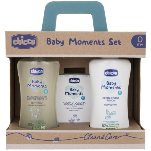 CHICCO BABY MOMENTS SET BAGNO DELICATO CORPO-CAPELLI PELLI DELICATE 200 ML + CREMA CORPO PELLI DELICATE 200 ML + ACQUA DI COLONIA BABY SMELL PELLI DELICATE 100 ML