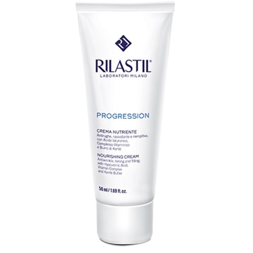 Rilastil Progression è una crema che contiene acido ialuronico, vitamine e burro di karitè. Rilastil Progression è una crema antirughe, rassodante e riempitiva.
