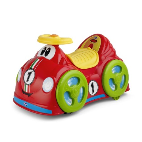 Con ruote piroettanti perché ogni manovra sia facile e sicura, con 5 differenti melodie e 9 effetti sonori e con capiente vano sottosella per portare in giro i giochi.