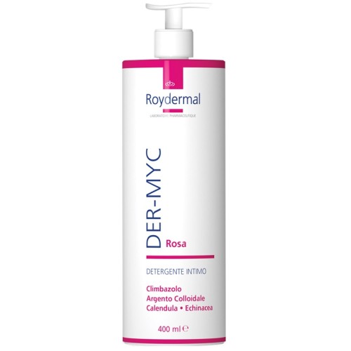 Dispositivo medico a pH 4.5 per il ripristino dell'acidità fisiologica delle mucose intime. Grazie ai suoi principi attivi e alla sua particolare ricchezza di componenti idratanti, DER-MYC Rosa forma un film protettivo prevenendo le infezioni batteriche e micotiche vulvo-vaginali. Il climbazolo svolge spiccata attività antimicotica. L'argento colloidale ha attività antibatterica. Per la sua delicatezza è indicato per la detersione intima quotidiana sia maschile che femminile.