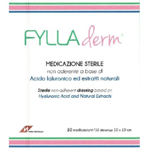 Garza idrofila di cotone ad armatura aperta, non aderente, uniformemente impregnata con crema a base di polietilenglicoli contenente Acido Ialuronico ed Estratti Naturali (Centella Asiatica ed Urtica Dioica). Fylladerm determina un’accelerazione dei processi rigenerativi tissutali, in quanto, grazie alla sua particolare composizione, favorisce la migrazione delle cellule preposte alla formazione del nuovo tessuto. Il principio basilare è quello di creare un effetto barriera, che permette il ripristino delle condizioni ottimali per il processo di cicatrizzazione. Fylladerm non aderisce alla lesione cutanea e permette il libero drenaggio della stessa consentendo il passaggio dell’essudato ad una medicazione secondaria assorbente. La medicazione è ottimamente tollerata dalla cute, conformabile, adattabile e facilmente applicabile.