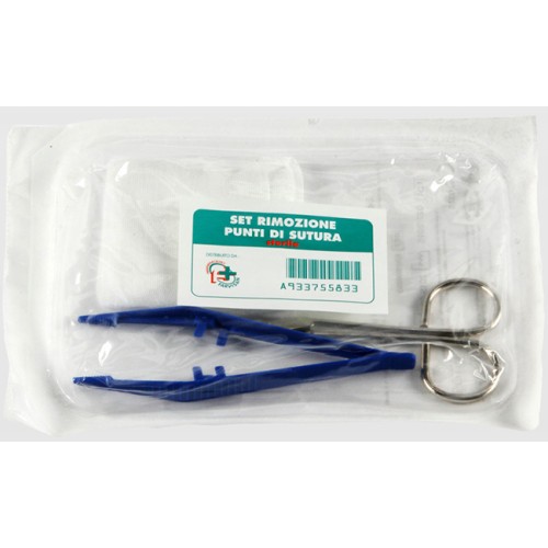 SET PER LA RIMOZIONE DEI PUNTI DI SUTURA COMPOSTO DA 1 FORBICE 1 PINZETTA 2 COMPRESSE DI GARZA DI COTONE