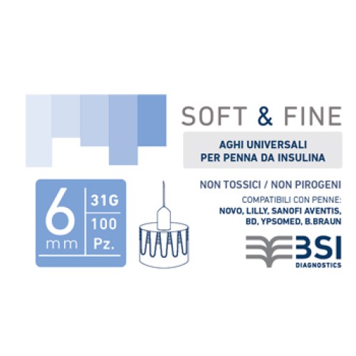 AGO PER PENNA DA INSULINA SOFT&FINE 31 GAUGE 6 MM 100 PEZZI