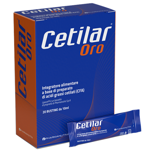 Integratore alimentare a base di preparato di acidi grassi cetilati (CFA), consistente principalmente in una miscela di acido miristico cetilato e acido oleico cetilato sintetizzati da alcole cetilico, acido miristico e acido oleico e, in misura minore, altri acidi grassi cetilati e altri composti dell'olio d'oliva.