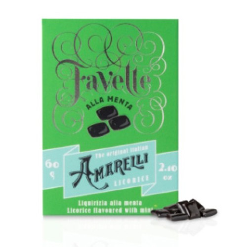 Liquirizia alla menta in pezzi lievemente appiattiti.