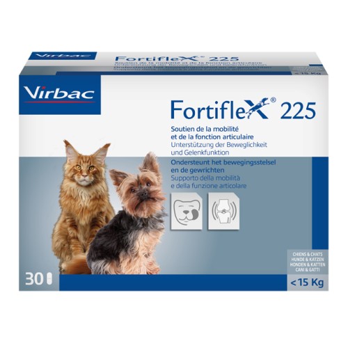 Gatti: ½ compressa appetibile di fortiflex 225 mg al giorno, per un periodo da 1 a 2 mesi ripetibile.