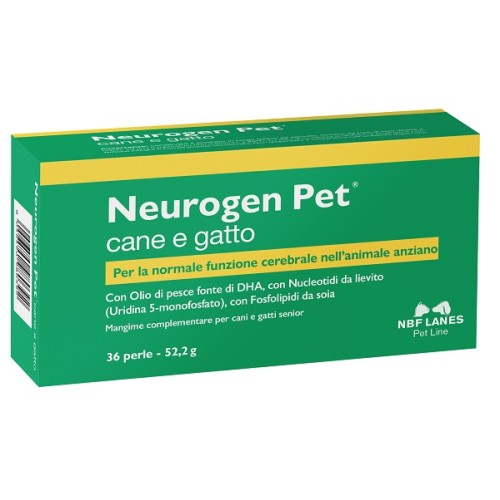 Neurogen Pet perle è un mangime complementare per cani e gatti anziani formulato con olio di pesce, nucleotidi e fosfolipidi da soia per la normale funzione cerebrale.